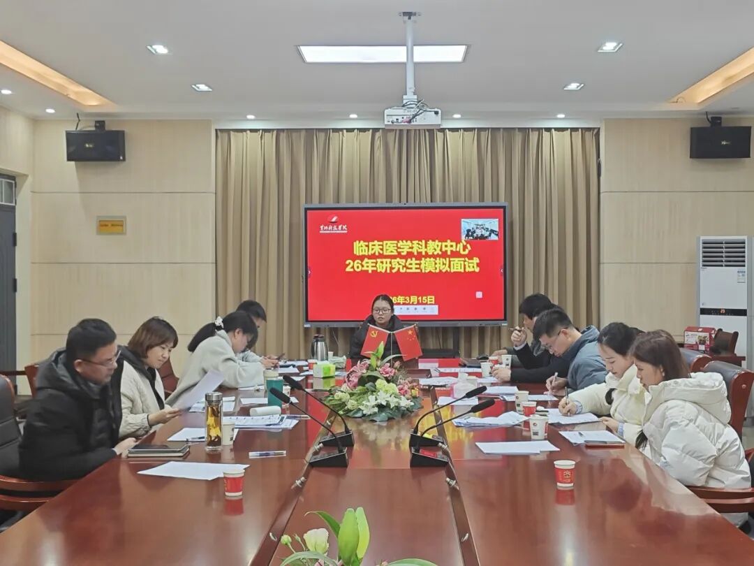 为切实帮助临床医学专业考研学子提升复试应试能力、从容迎战考研复试,3月15日,临床医学科教中心组织开展2026年考研复试模拟面试帮扶活动。本次模拟面试面向21级临床医学专业初试成绩优异的学生,临床医学科教中心主任王辉、副主任张楠、党政学工办副主任科员马社敏,以及往届考研优秀学长学姐共同担任评委,组成专业指导团队。