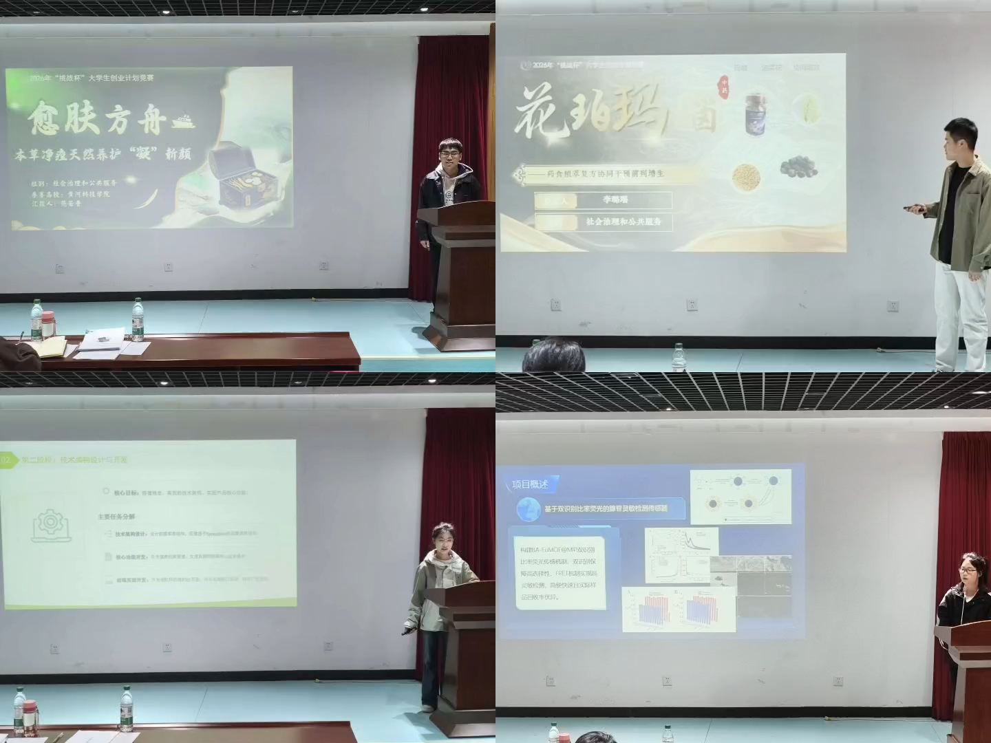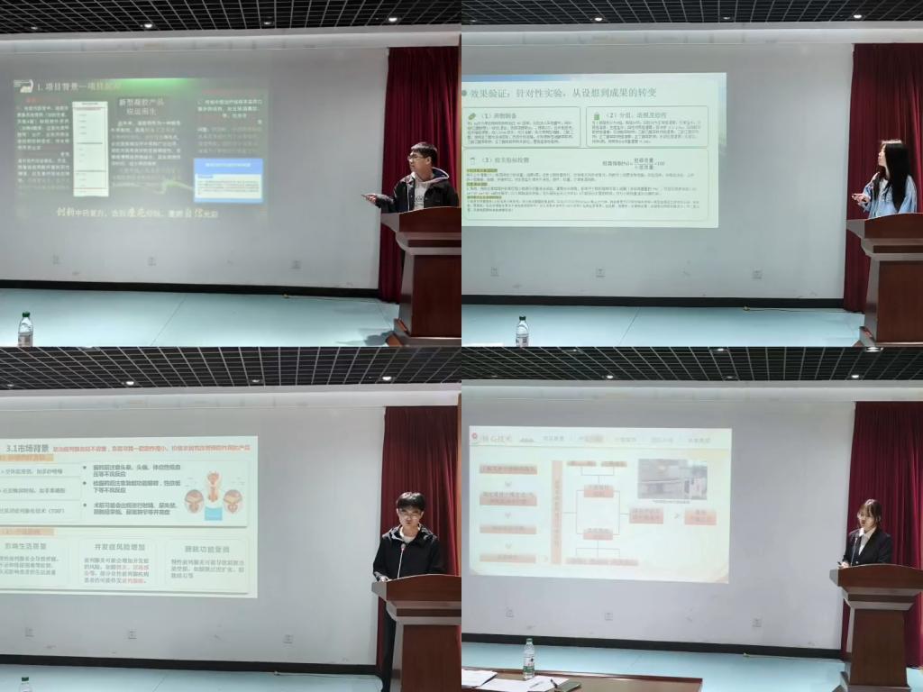 医学部高度重视此次赛事,积极动员广大学生踊跃参与,精心统筹各项筹备组织工作,全力保障赛事有序开展。本次比赛共有14组学生队伍携各自的创业计划同台竞技,各团队依次登台,围绕项目背景、研发思路、实施路径、核心优势、市场前景及预期效益等内容进行全面展示。评委老师们认真聆听各队伍汇报,现场进行针对性提问交流,并从主题契合度、内容规范性、项目可行性、社会效益等多个维度,对每一件作品进行细致点评与专业指导,为学生们完善项目提供了宝贵建议。