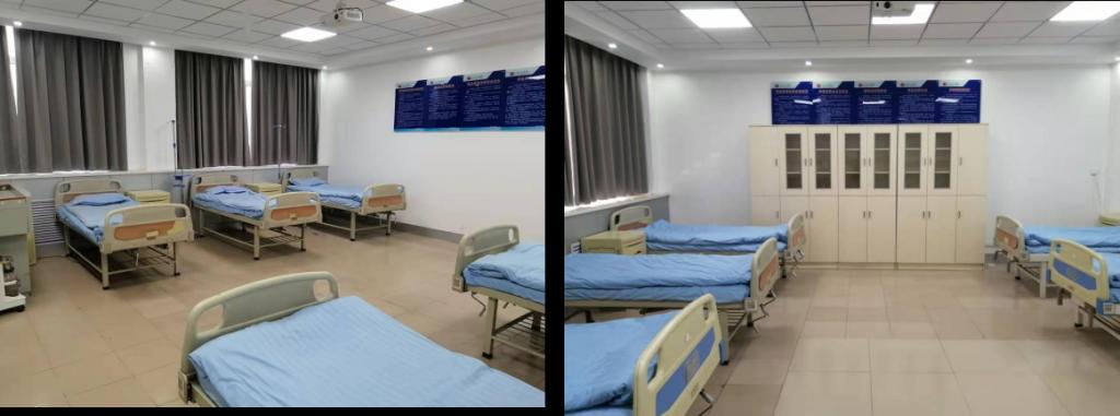 护理开放练习室主要为护理学专业学生提供课外实验项目的自主练习平台。该练习室参照医院普通病房标准配置,设有标准化病床单元,支持开展铺备用床、鼻饲法、静脉输液等多种基础护理操作项目。